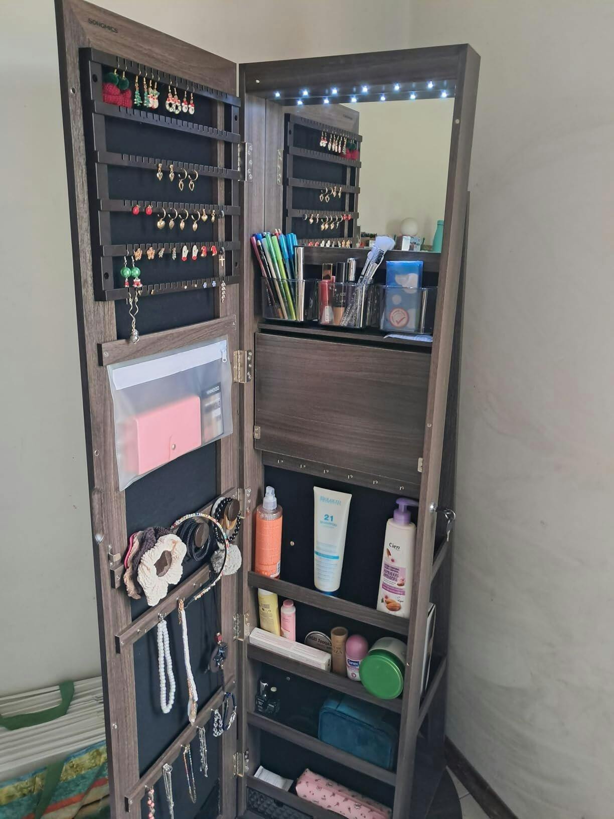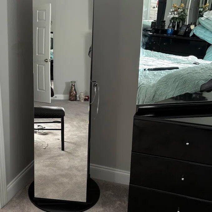 Dites adieu au désordre avec cette incroyable armoire à bijoux rotatif avec miroir.