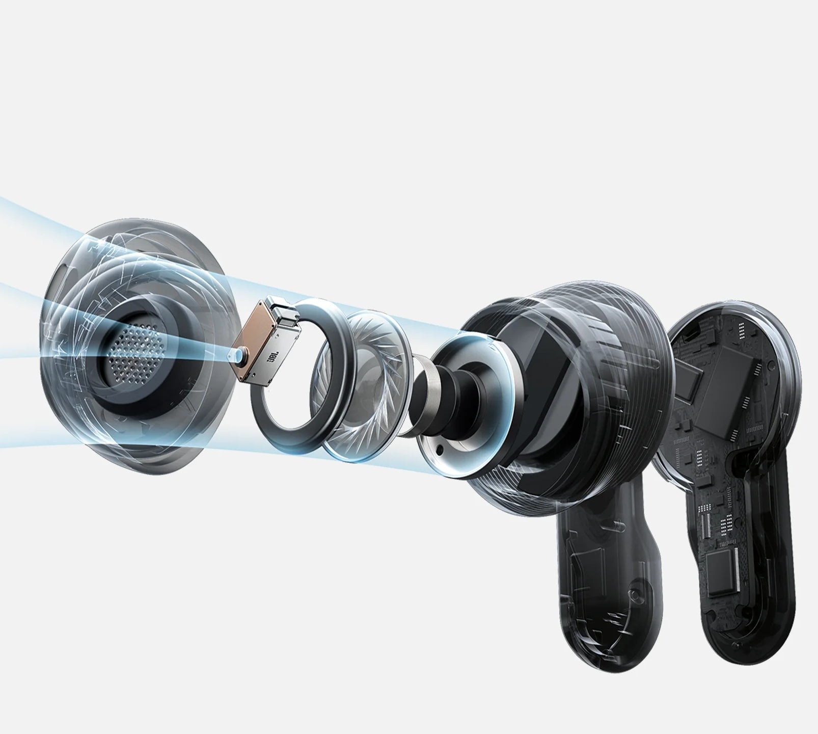Grâce à l'algorithme intégré, les deux microphones de chaque écouteur captent et transmettent votre voix avec clarté ; le microphone interne anti-vent isole les bruits parasites et les distorsions.