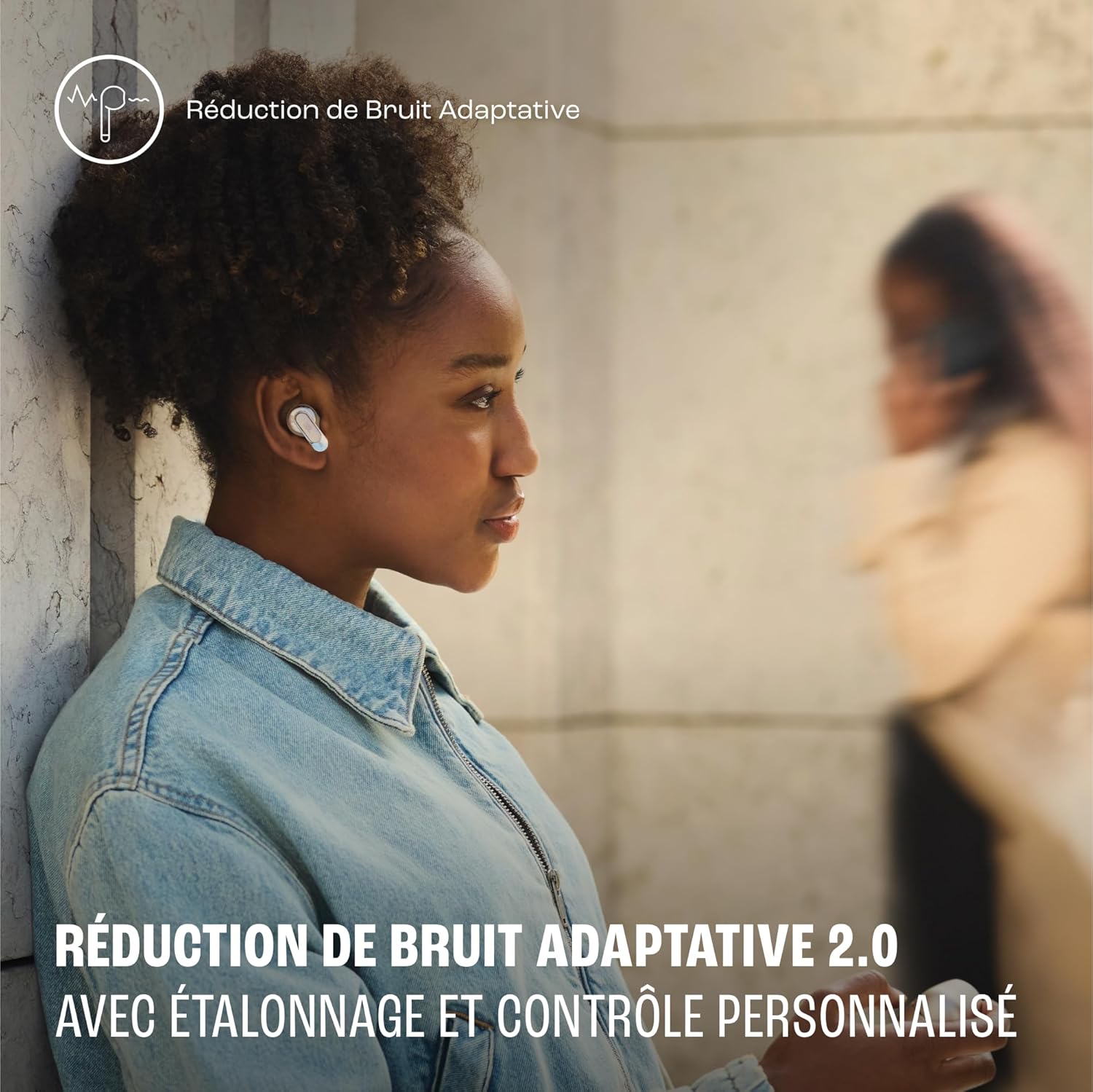 Les écouteurs sans fil s'adaptent à votre environnement en temps réel ; ils utilisent une paire d'embouts en mousse supplémentaires pour une isolation passive optimale.