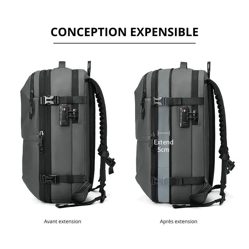 Grâce à son volume modulable et sa technologie de compression, le sac vous permet d’emporter jusqu’à 50% d’affaires en plus tout en gardant un format compact