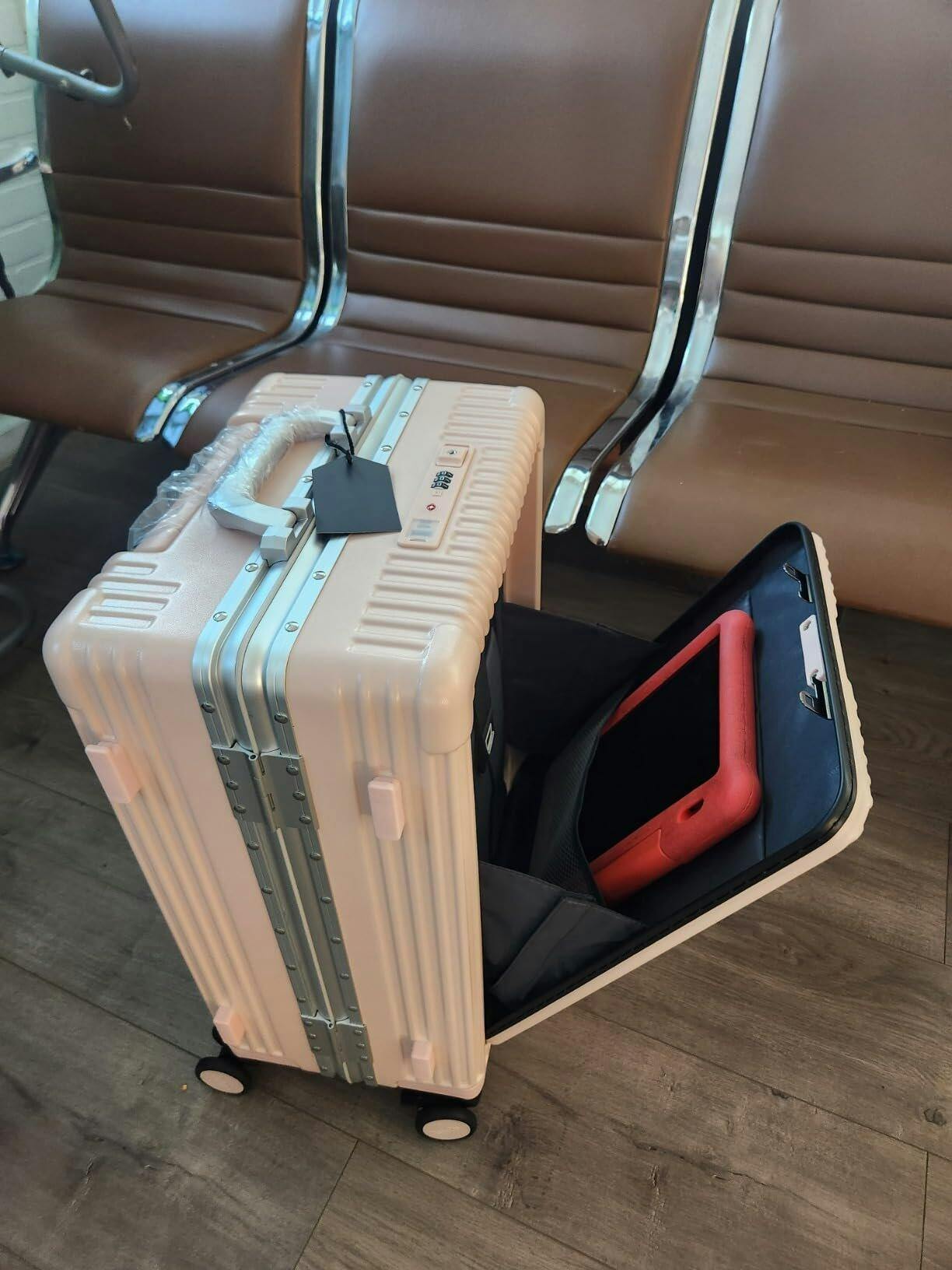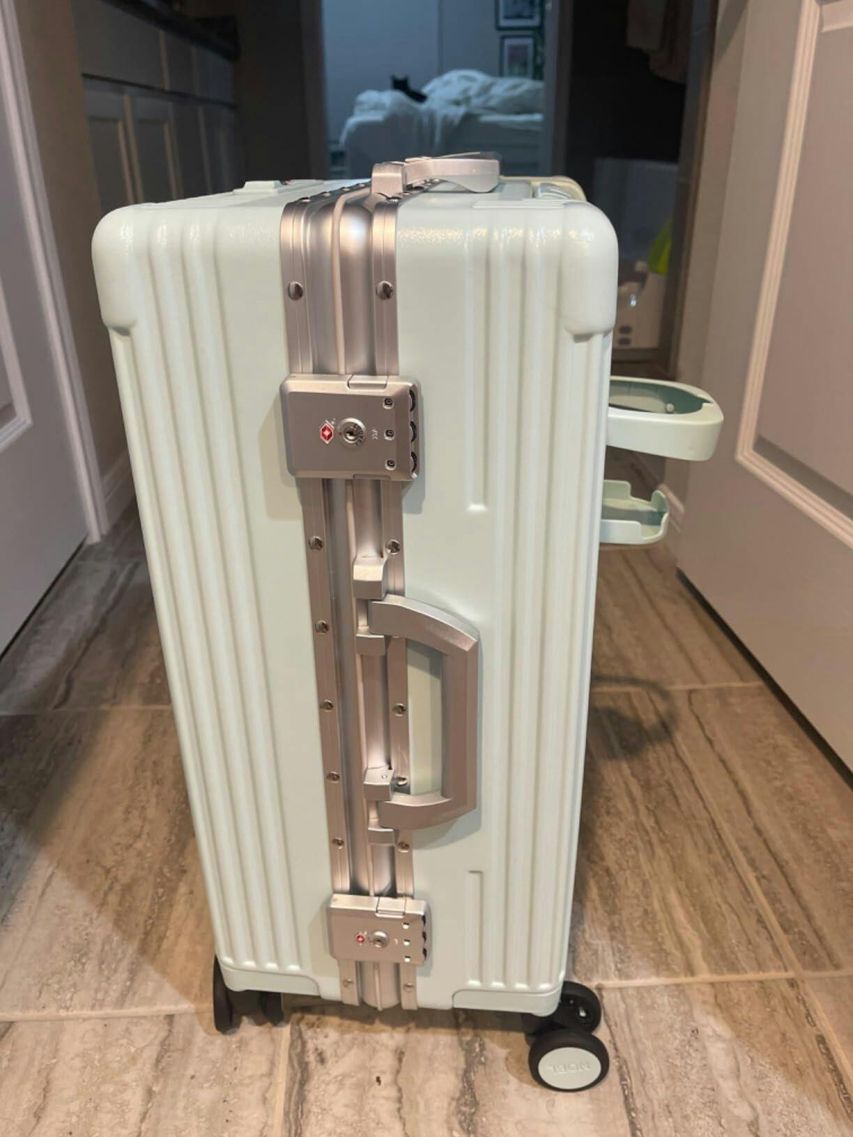 Un support pour téléphone est situé sur le dessus de la valise pour plus de praticité.
